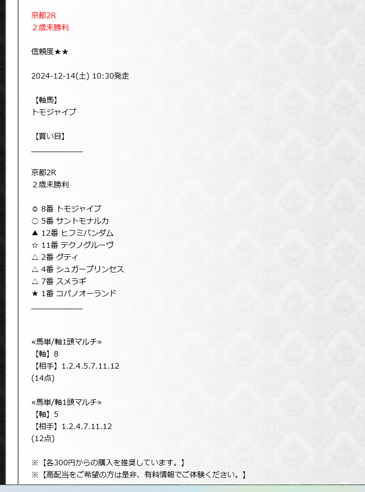 | 的中率 | 回収率 | 無料予想 | 有料予想 | 高配当 |