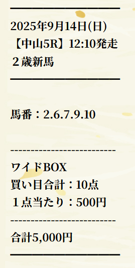 その中で6日(土)の暁の無料予想は馬券代5000円で