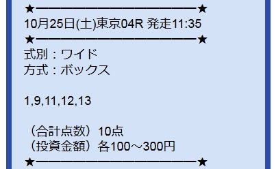 東京4Rのワイド3種完全的中で2万9000円獲得!