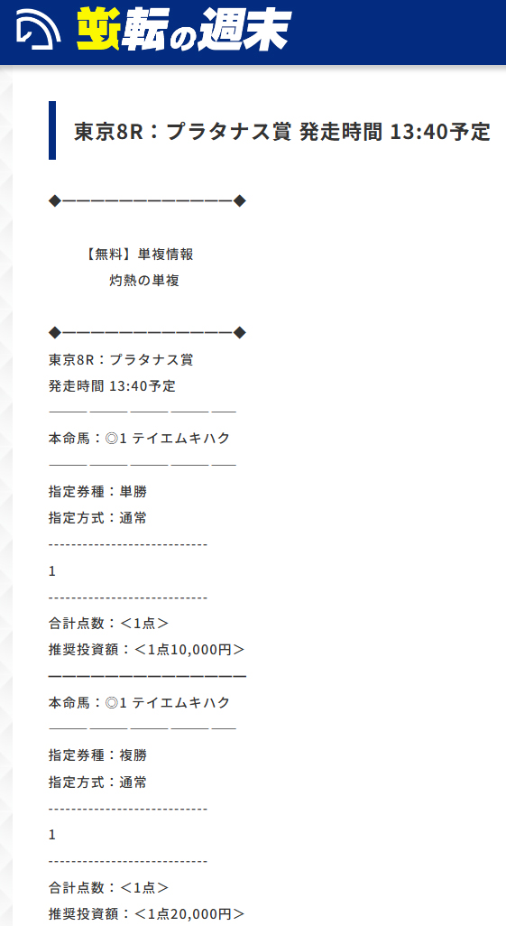 買い目点数1点ずつでダブル的中で相当いいおもい出来ました!