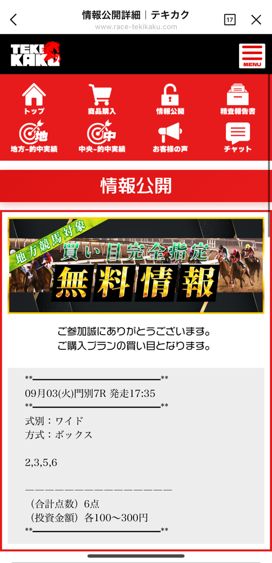 あえてユーザーの為に的中率の高い裏開催のレースの無料予想を届けてくれたのは評価高いです!