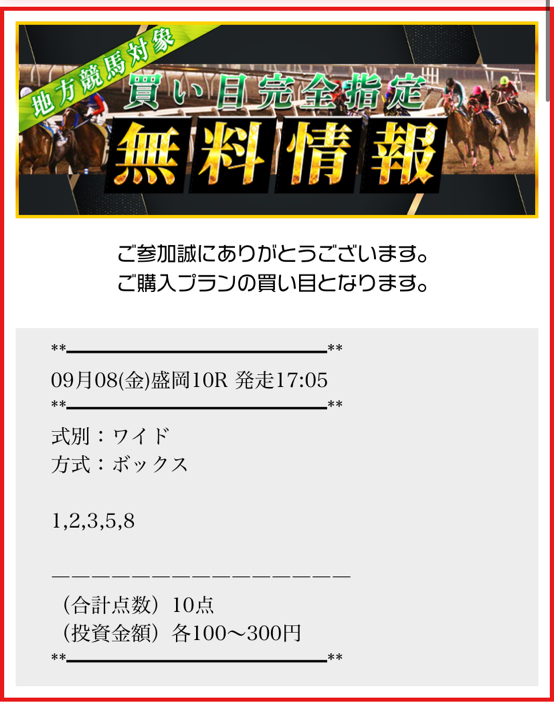 盛岡10Rの無料予想で2馬券種的中!しかも
