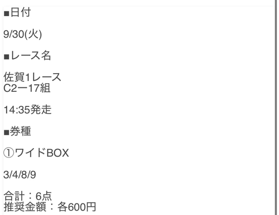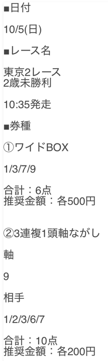 馬券代総額3600円