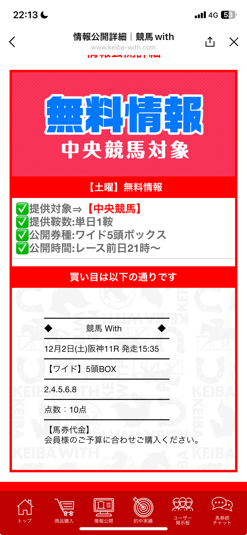 競馬withの無料予想にワイドが儲かるのを教えてもらった!